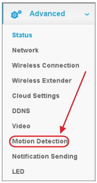 - Щёлкните в консоли Advanced по строке Motion Detection.