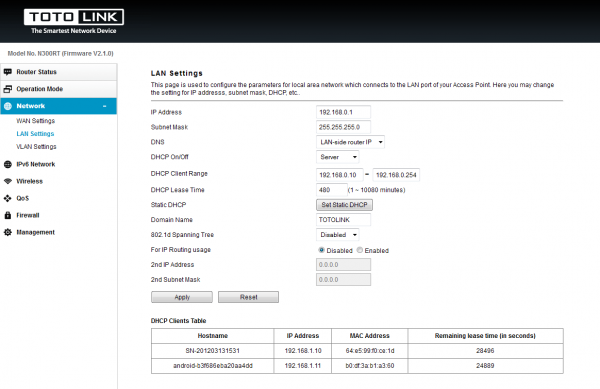 Роутер перезапустится с новыми настройками ЛВС. ПК или ноутбуки, подключённые к роутеру, также обновят свои IP-адреса.