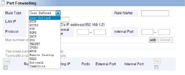- Впишите имя сервера и диапазон портов, которые вы открываете для всех пользователей вашей локальной сети. Выберите шаблон правила проброса портов (ПП) «Задано пользователем» (User Defined) и введите имя вашего сервера, до которого открываются порты. Впишите начальные и конечные внешние и внутренние порты.