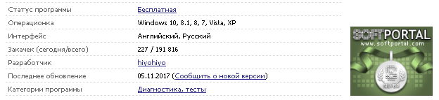 Популярная и очень удобная программа, предназначенная для сравнительного анализа (тестирования) быстродействия жестких дисков компьютера. Позволяет измерить скорость чтения и записи данных. По данным http://www.softportal.com от 14.01.2018: последнее обновление было 05.11.2017.