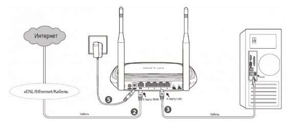 Для первоначальной настройки кабель провайдера нужно вставить в гнездо, обозначенное WAN или Internet, а ПК/ноутбук присоединить к разъёму с обозначением LAN