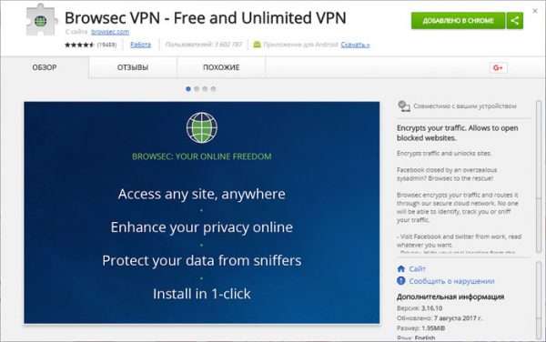 Это расширение выделяется тем, что оно полностью бесплатно. Нет никаких подписок, премиум версий и подобного. Вы просто устанавливаете расширение и можете неограниченно использовать VPN-подключение. Кроме этого, имеются ещё преимущества: